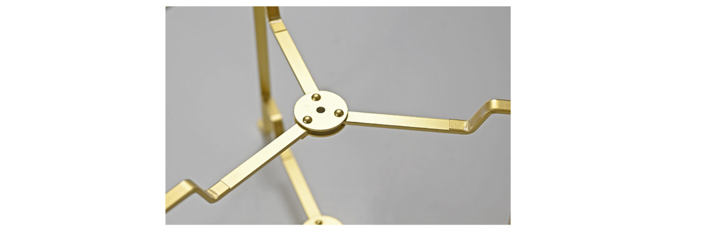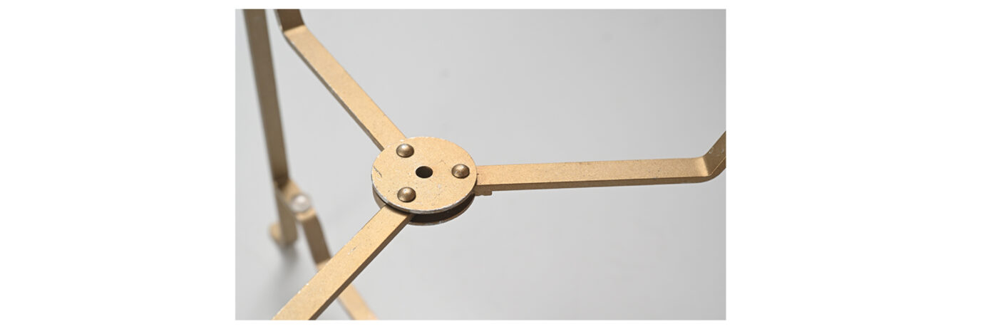 別注でアンティークゴールド色に塗装しましたが、可動する中央部や取っ手の根元、お皿が当たる場所、それから縦に伸びるフレーム周りにダメージが見られました。
