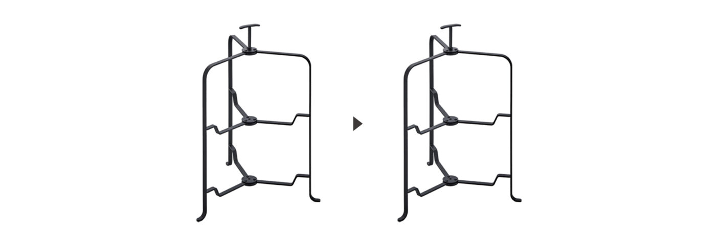 既存の器と組み合わせることで簡単にアフタヌーンティーメニューを始めることができる「折りたたみ式ティースタンド」。